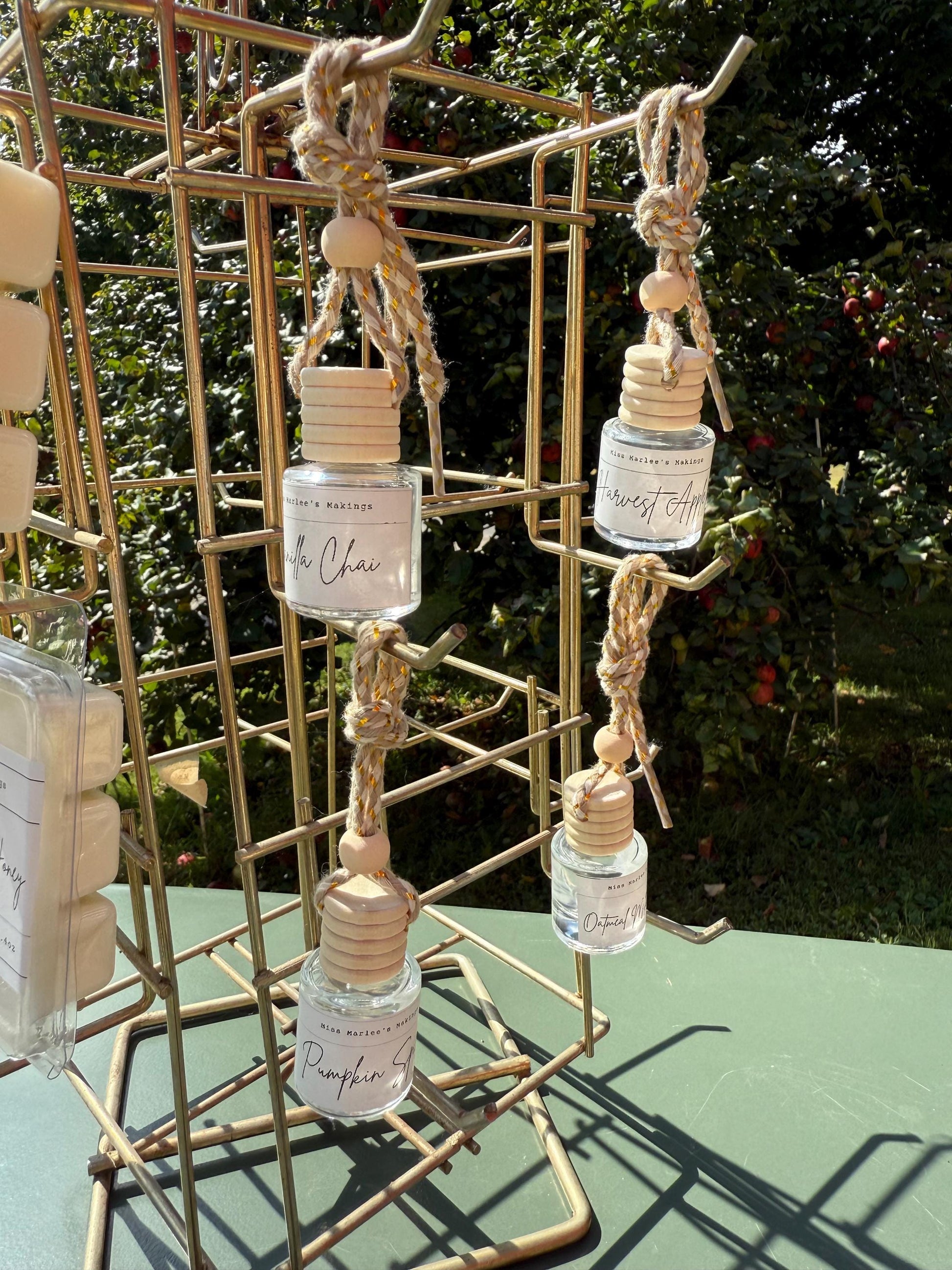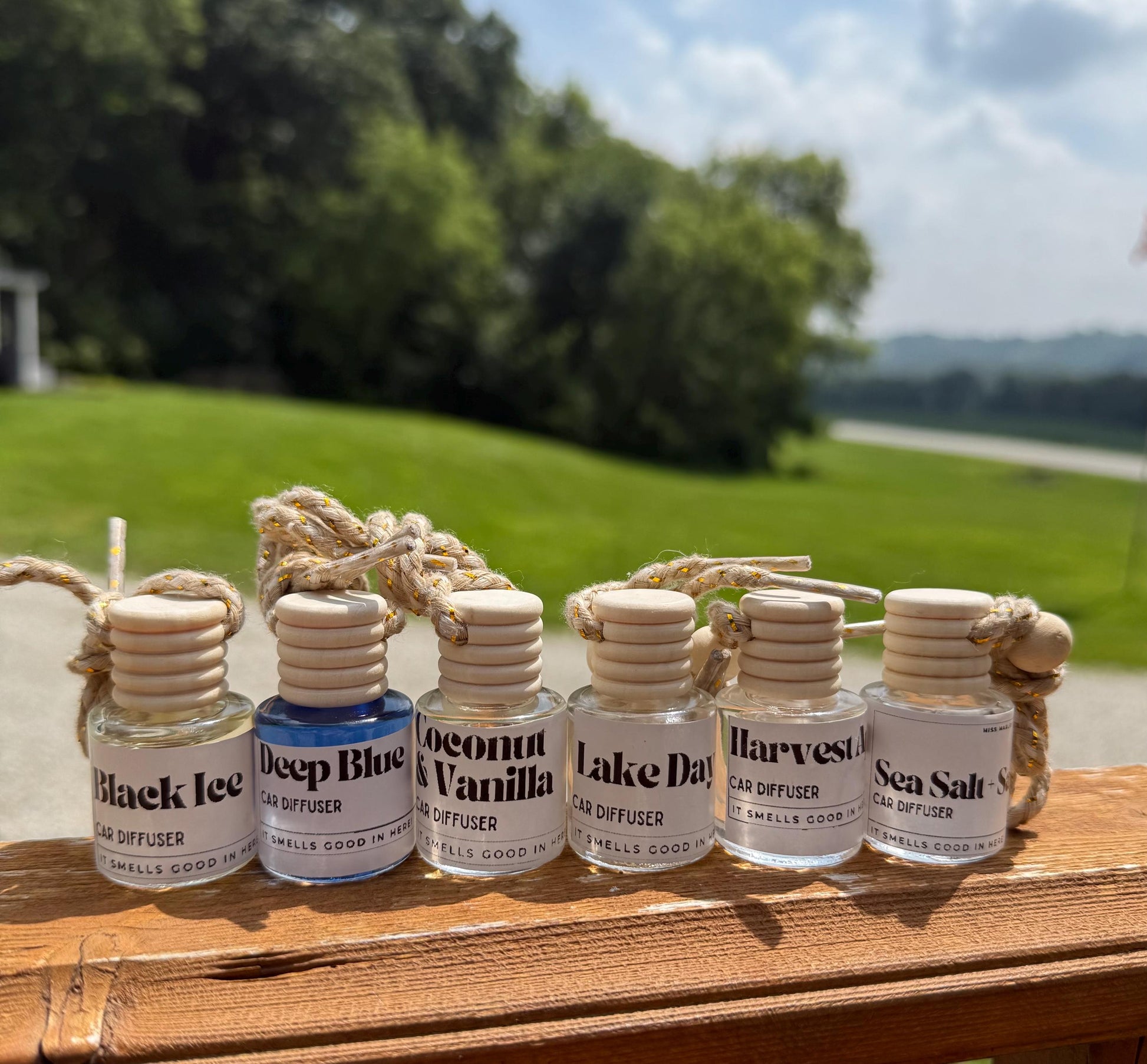 Various scents available. Made with only two ingredients and non toxic! Last approximately 4-6 weeks. Comes in a glass bottle with a wooden lid and an instruction guide. Great for freshening up small spaces, gifts, or your own car.
