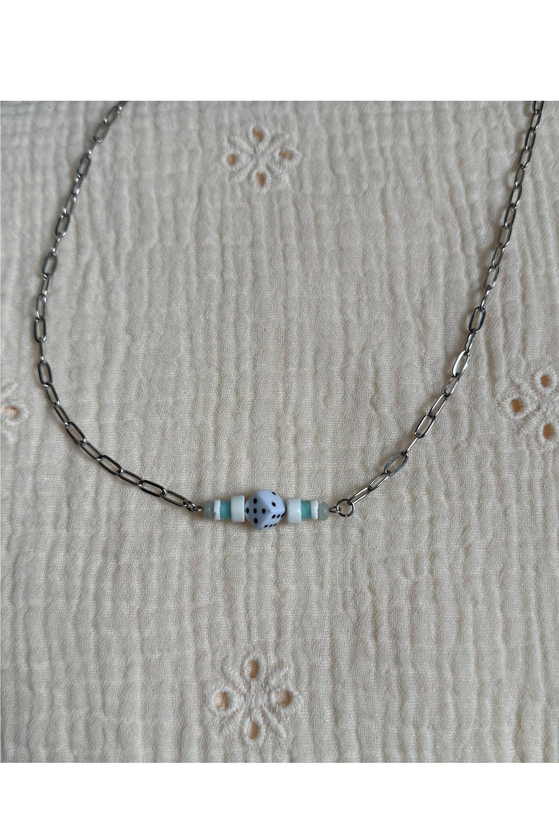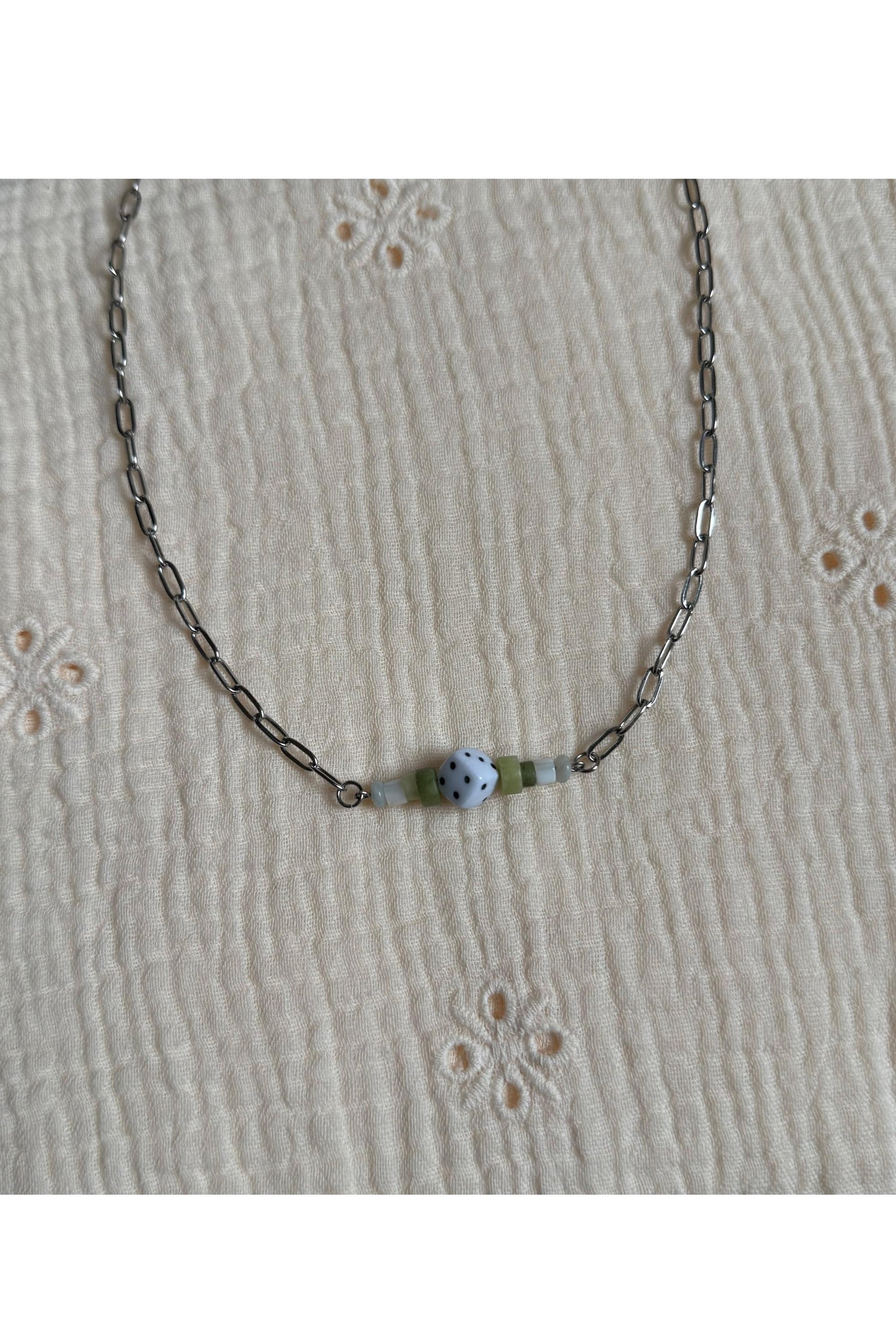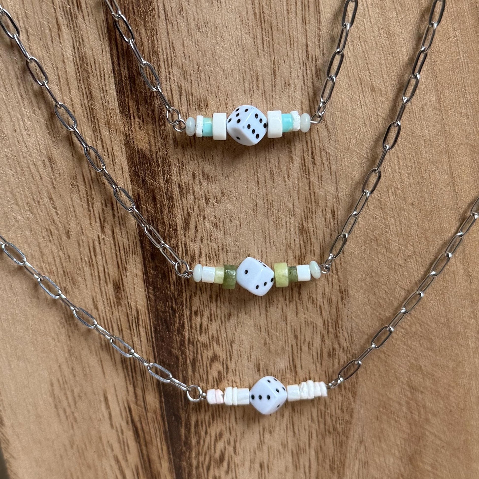 Dice and Stone Bar Necklace.