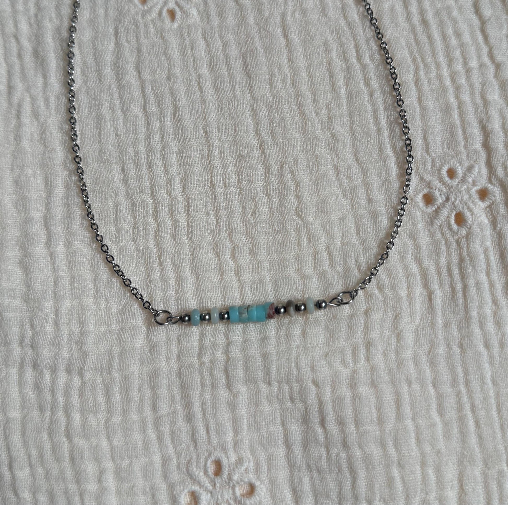 Sterling Silver Pearl & Blue Stone Bar Necklace "The Martha"