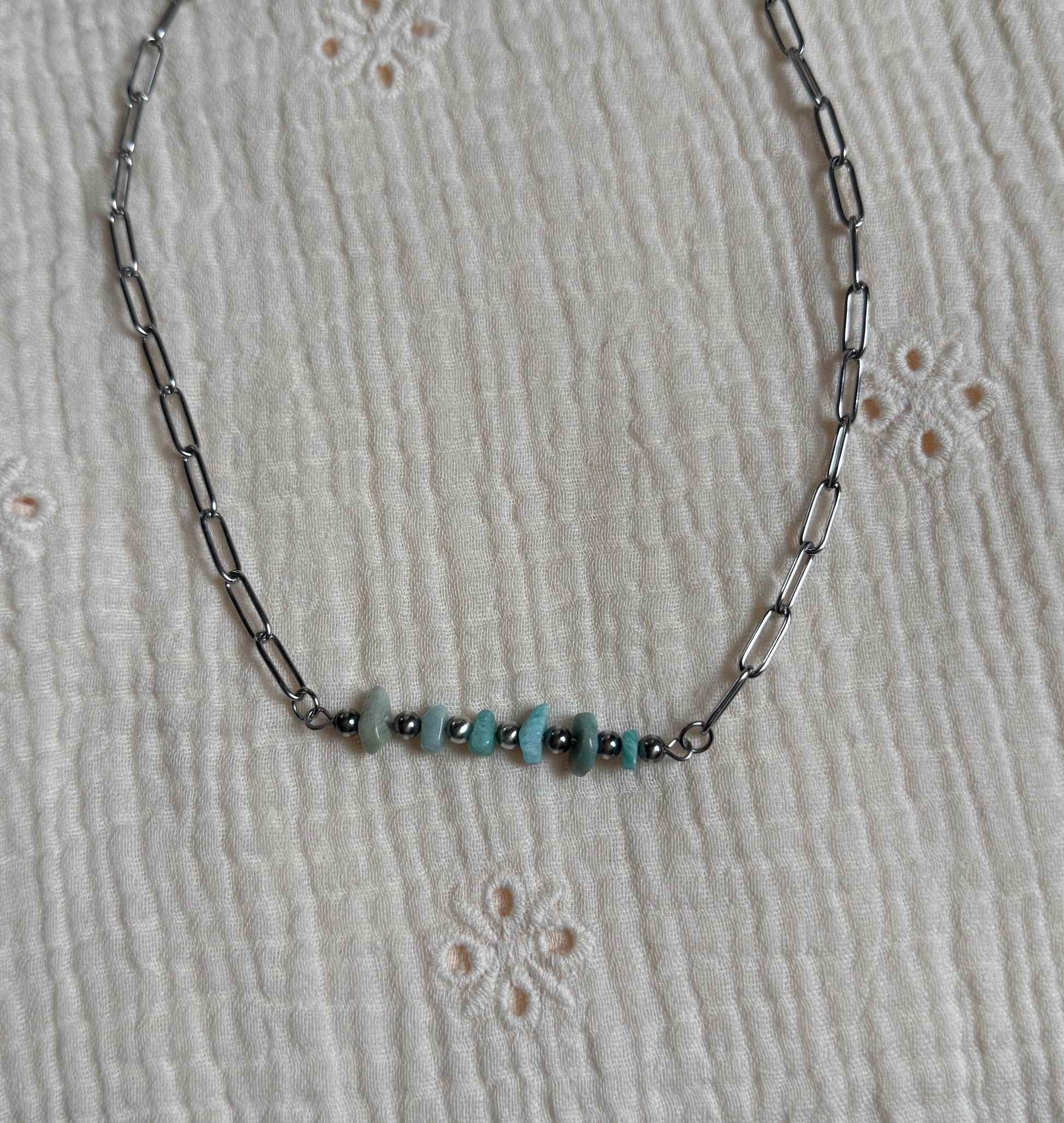 Sterling Silver Pearl & Rock Chip Bar Necklace "The Cody"