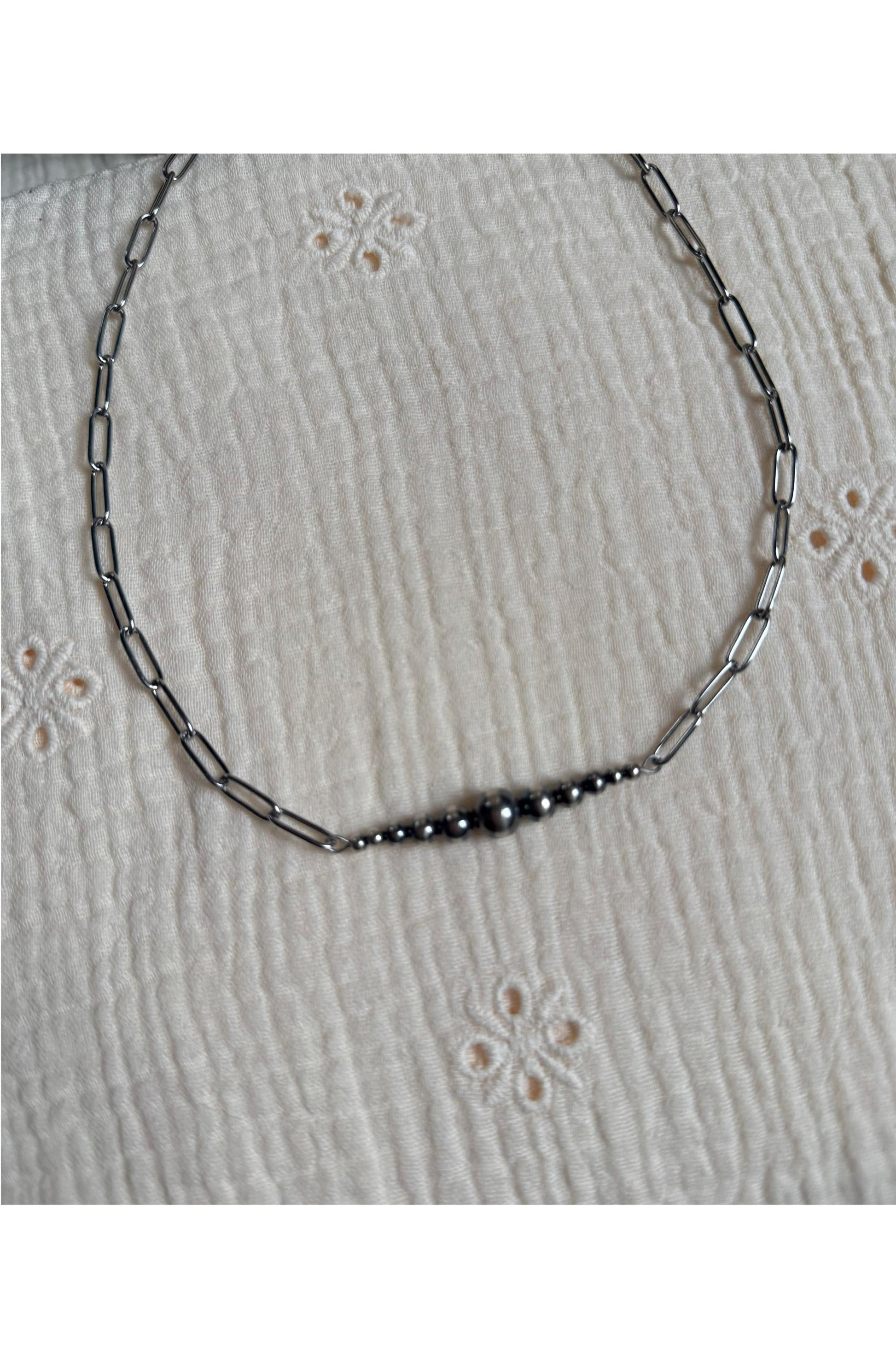 Sterling Silver Pearl & Stone Bead Bar Necklace ''The Lucas''