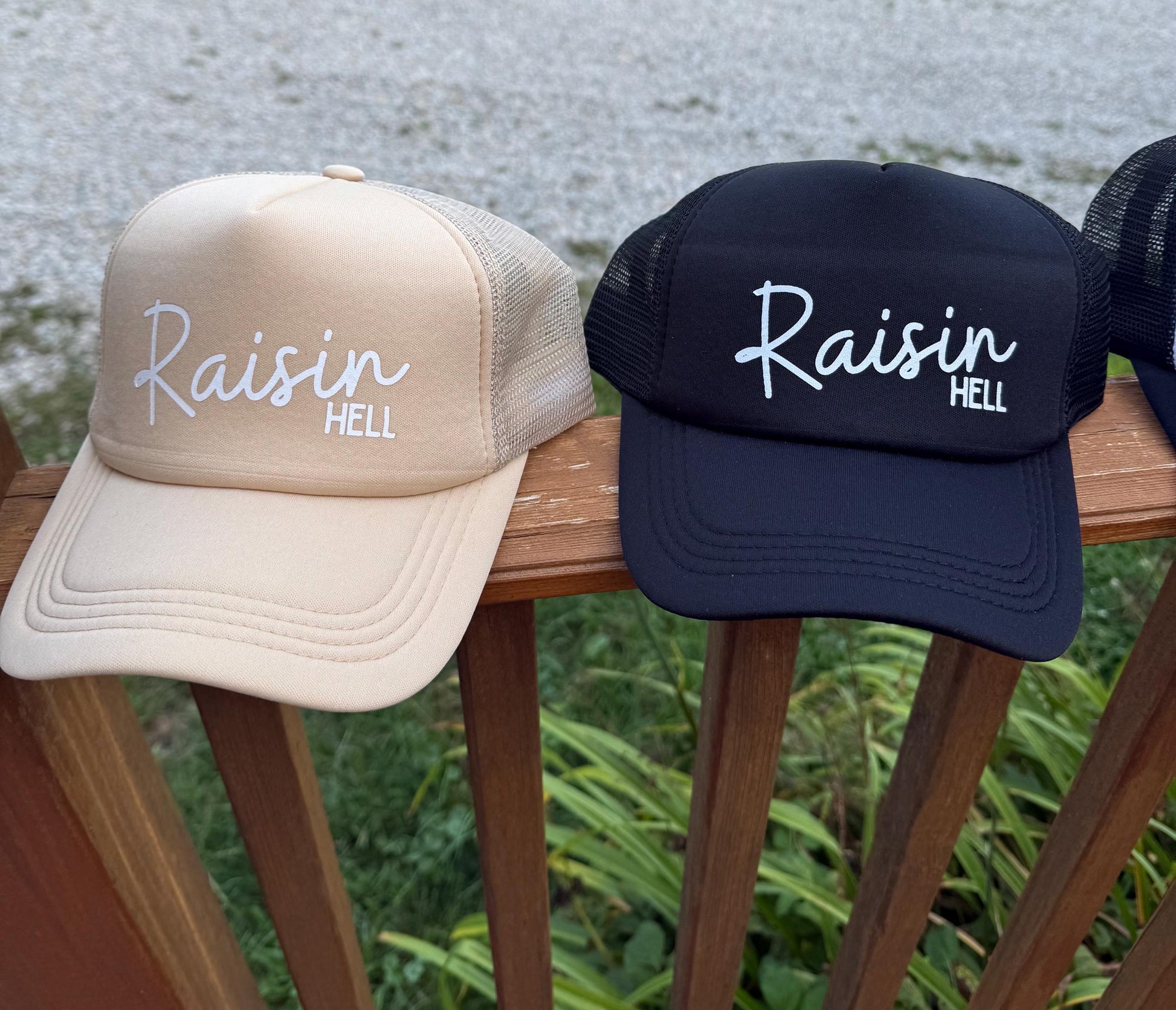 Trucker Hat: Raisin Hell, Racin, Say Howdy Get Rowdy